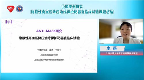 隱蔽性高血壓是一種特殊類型的高血壓,患者來院時(shí)偶測血壓數(shù)據(jù)可能不高,需要通過24小時(shí)動(dòng)態(tài)血壓監(jiān)測或家庭血壓監(jiān)測來診斷。據(jù)國內(nèi)眾多研究顯示,隱蔽性高血壓患者靶器官損傷和心血管事件發(fā)生風(fēng)險(xiǎn)較正常血壓者顯著增加,ANTI-MASK研究作為第一項(xiàng)探索隱蔽性高血壓患者降壓治療效果的臨床試驗(yàn),首次說明了降壓治療有利于隱蔽性高血壓患者的靶器官保護(hù)。為讓更多臨床醫(yī)生知曉隱蔽性高血壓危害,優(yōu)化隱蔽性高血壓患者治療策略,在第八屆中國血壓監(jiān)測學(xué)術(shù)會議期間,上海市高血壓研究所、上海交通大學(xué)醫(yī)學(xué)院附屬瑞金醫(yī)院李燕教授特帶來專題報(bào)告,解讀ANTI-MASK研究的試驗(yàn)流程與試驗(yàn)結(jié)果。